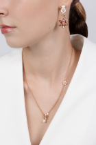Różowo-złoty naszyjnik Troskliwa Gołąbka z motywem gołąbki z białą perłą z muszli i małym kwiatkiem czereśni, będzie symbolem poświęcenia i miłości, idealnym na każdy dzień.
