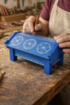 Każdy rzeźbiony wzór niesie swoją symbolikę – koła, motywy roślinne i geometria, które dawniej pełniły funkcję zarówno dekoracyjną, jak i ochronną. Dziś te tradycyjne elementy ożywają w nowoczesnej formie.