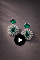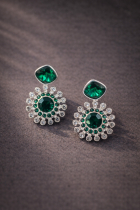 Mniejsze wiszące kolczyki z kwiatem arcydzięgla lekarskiego, który symbolizuje ochronę i harmonię. Delikatna biżuteria w szmaragdowo-zielonym kolorze, otoczona drobnymi kryształkami, które przypominają krople porannej rosy.