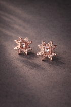 Delikatne kolczyki w kształcie starodawnej gwiazdy, symbolu ochronnego ręcznie zdobione kryształkami, z różowego złota. Biżuteria nadaje się na każdą okazję i mogą ją nosić kobiety w każdym wieku. Przy tworzeniu biżuterii z serii FOLKIE Čičmany zainspirowaliśmy się oryginalnym strojem ludowym ze wsi Čičmany i geometrycznymi wzorami na kultowych domkach z Čičmian.